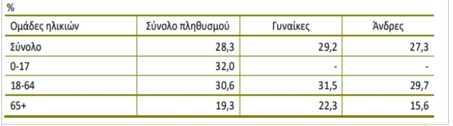 Πληθυσμός σε κίνδυνο φτώχειας ή κοινωνικό αποκλεισμό, κατά ομάδες ηλικιών και φύλο: 2021