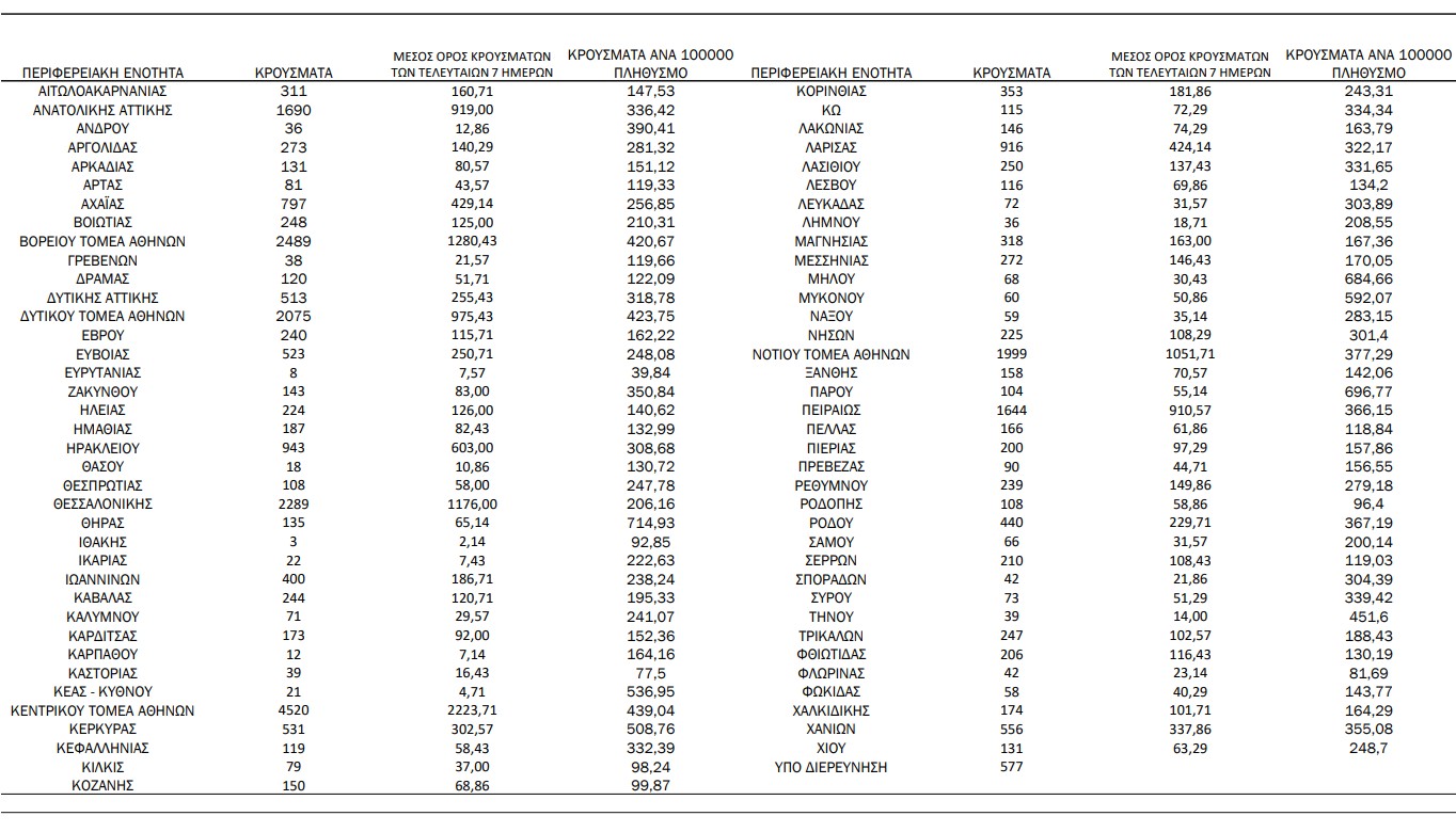 Αναλυτικά η διασπορά των νέων κρουσμάτων σήμερα στην υπόλοιπη Ελλάδα