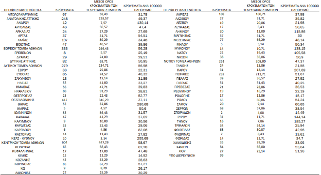 Αναλυτικά η διασπορά των νέων κρουσμάτων σήμερα στην Ελλάδα