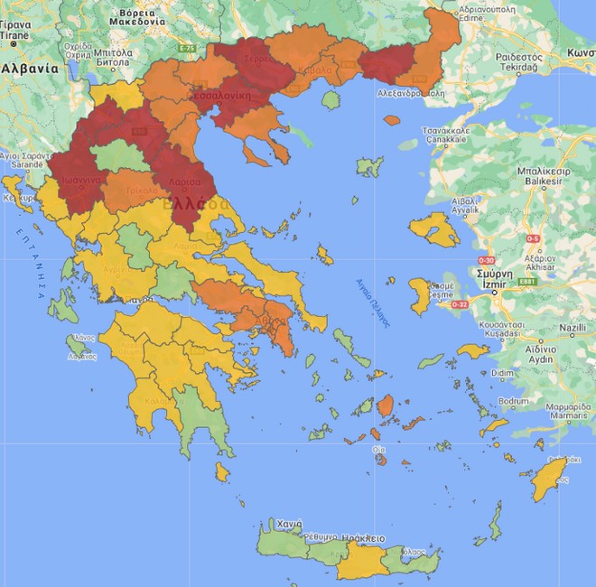 Κορονοϊός: Ο νέος χάρτης υγειονομικής ασφάλειας – Ποιες περιοχές είναι στο “κόκκινο”