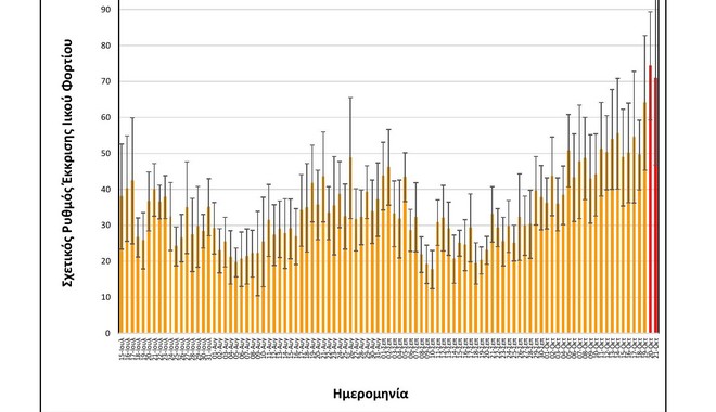 Συγκεκριμένα, στα δείγματα που λαμβάνονται καθημερινά στην είσοδο της Εγκατάστασης Επεξεργασίας Λυμάτων Θεσσαλονίκης, αναφορικά με τις εξορθολογισμένες τιμές σχετικής έκκρισης ιικού φορτίου, η μέση τιμή των δύο πιο πρόσφατων μετρήσεων, δηλαδή της Τετάρτης 20/10 και της Πέμπτης 21/10 είναι: