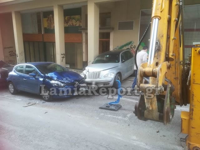 Έξι αυτοκίνητα “πήρε μαζί του” ένα μηχάνημα έργου που κάτω από αδιευκρίνιστες συνθήκες, κύλησε σε κατηφόρα, σε γειτονιά της Λαμίας.