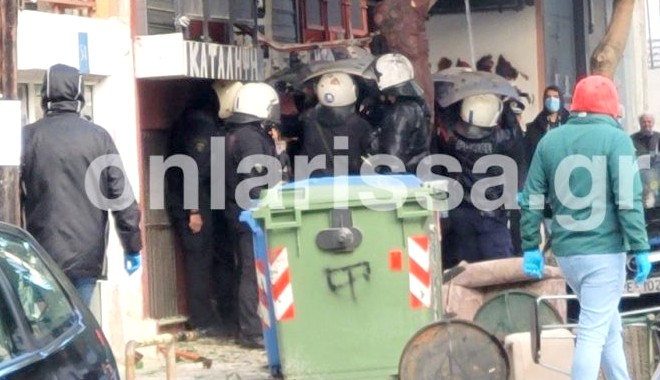 Μεγάλη ένταση το πρωί της Δευτέρας στο κέντρο της Λάρισας. Επεισόδια με τις αστυνομικές δυνάμεις που επιχειρούν να εκκενώσουν την κατάληψη.