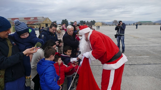 Με ένα αεροσκάφος F-16 «προσγειώθηκε» σήμερα στην 110 Πτέρυγα Μάχης της Πολεμικής Αεροπορίας της Λάρισας ο Άγιος Βασίλης, μοιράζοντας καραμέλες σε παιδιά που βρέθηκαν στην εορταστική εκδήλωση της διοίκησης της 110 Πτέρυγας Μάχης και της αντιδημαρχίας Κοινωνικής Πολιτικής του δήμου Λαρισαίων.