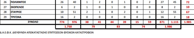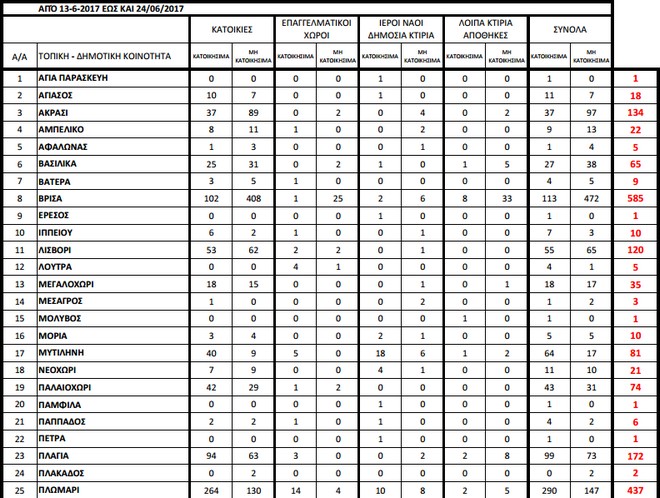 *Διενεργήθηκαν μέχρι και σήμερα 1986 αυτοψίες στο νησί της Λέσβου. Κρίθηκαν κατοικήσιμα 871 κτίσματα και μη κατοικήσιμα 1.115.