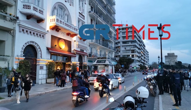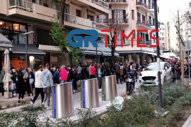Παρόμοια εικόνα παρατηρήθηκε, από το μεσημέρι έως και την νύχτα, έξω από καφέ και μπαρ στο κέντρο της Θεσσαλονίκης που λειτουργούν με takeaway. Οι φωτογραφίες του GR Times απεικονίζουν τους θαμώνες συνωστισμένους με τις μάσκες στο πηγούνι, υπό την διακριτική επίβλεψη της αστυνομίας, η οποία δεν παρενέβη.