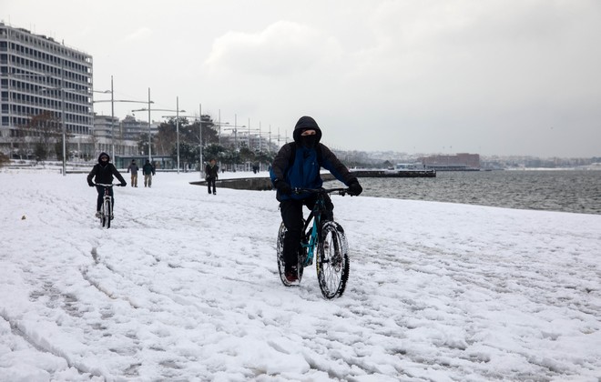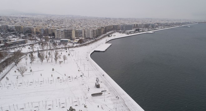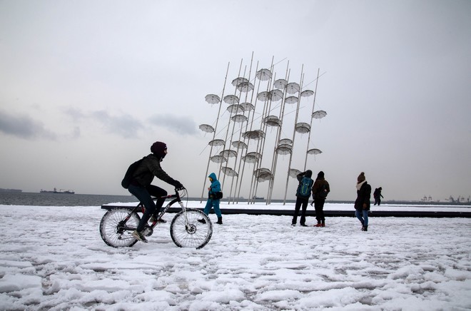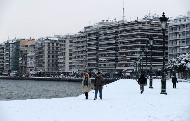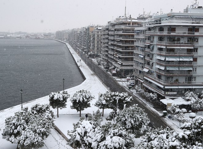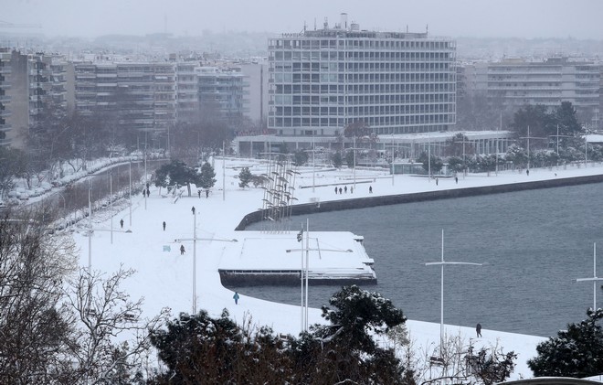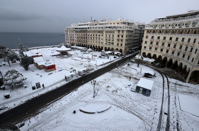 Τα χιόνια άφησαν πάντως χωρίς ρεύμα περιοχές της Θεσσαλονίκης.