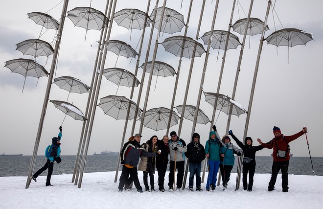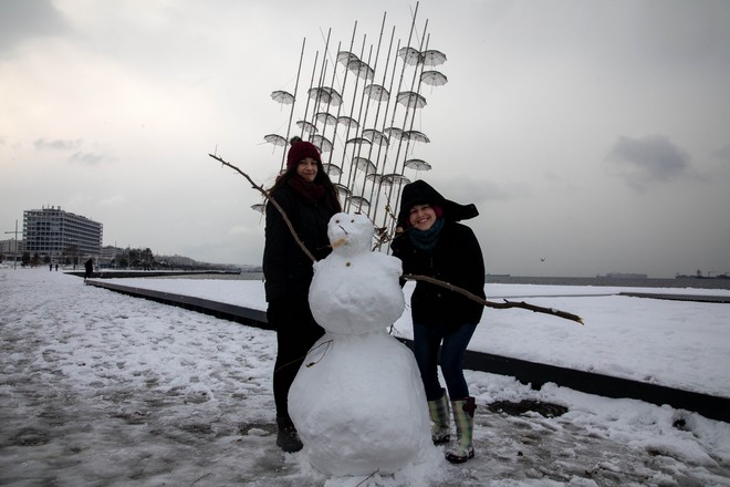 Το "έστρωσε" για τα καλά στη Θεσσαλονίκη και οι κάτοικοί της βρήκαν μια ευκαιρία να παίξουν με το χιόνι στο κέντρο της πόλης.