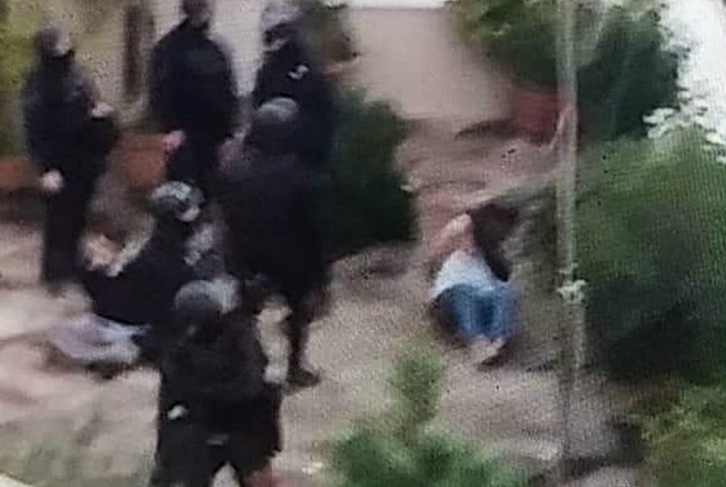 Μετά από λίγο άκουσαν θόρυβο στην ταράτσα, ανέβηκαν ο πατέρας με τους γιους του και ήρθαν αντιμέτωποι με τις αστυνομικές δυνάμεις που τους ακινητοποίησαν με βία και τους προσήγαγαν. Μάλιστα, αλγεινή εντύπωση προκαλεί η εικόνα προσαχθέντα με κουκούλα στο κεφάλι.