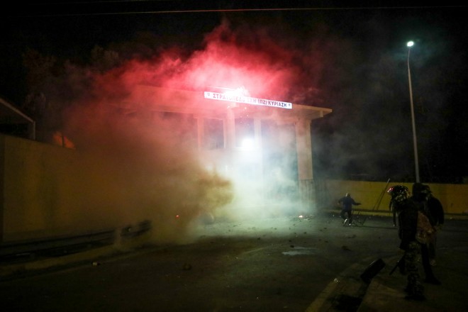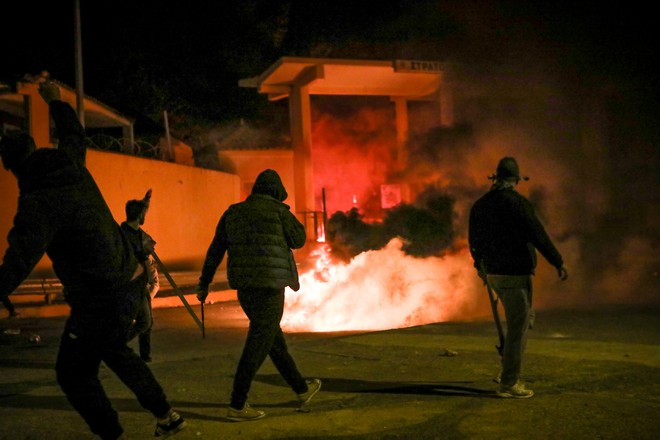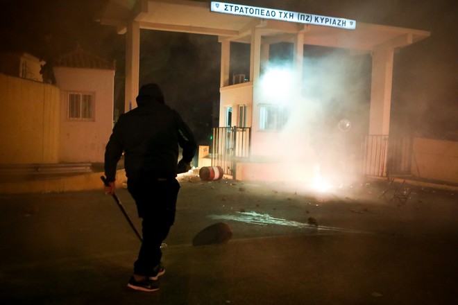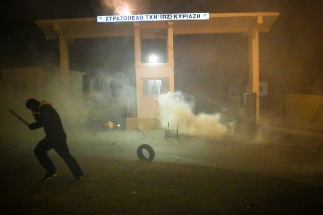 Όπως αναφέρει το δημοσίευμα, οι συμπλοκές σημειώθηκαν κατά τη διαμαρτυρία των κατοίκων στο ξενοδοχείο που φιλοξενεί τους άνδρες των ΜΑΤ.