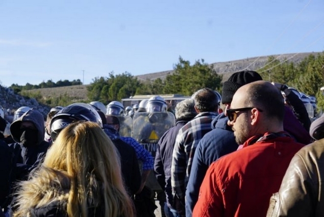 Το απομεσήμερο, ομάδες διαδηλωτών μέσα από δασικά μονοπάτια, έφτασαν στου Καβακλή, την επιταγμένη έκταση, όπου βρισκόταν άνδρες των ΜΑΤ και μηχανήματα που πραγματοποιούσαν εργασίες για την κατασκευή της νέας δομής. Στο οροπέδιο αυτό εξελίχθηκε άγρια μάχη με πετροπόλεμο από μεριάς διαδηλωτών και με τα ΜΑΤ να απαντούν με χημικά και χειροβομβίδες κρότου λάμψης. Τελικά τα ΜΑΤ υποχώρησαν, ενώ κατά τη διάρκεια των συγκρούσεων υπέστησαν σοβαρές ζημιές δυο κλούβες της ΕΛΑΣ.