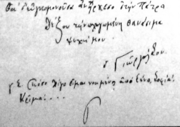 «Μην παραξενευθείς με το γράμμα αυτό. Κάποτε θα το ελάμβανες. Δεν μπορεί να με σταματήσει τίποτε πια.