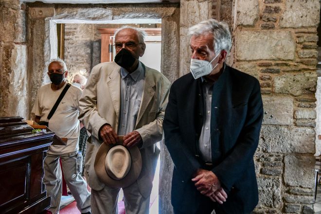 «Ήταν ένας μεγάλος δημιουργός και ένας καλός άνθρωπος. Είναι τιμή μας που είμαστε εδώ. Ήρθαμε να τον αποχαιρετίσουμε στο τελευταίο του ταξίδι», δήλωσε φανερά συγκινημένη η κ. Σοφία.