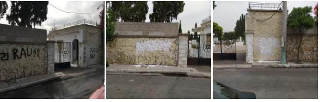 Ενόψει της δίκης της ναζιστικής Χρυσής Αυγής, κάποιοι βάνδαλοι βεβήλωσαν το Εβραϊκό Νεκροταφείο στην Αθήνα, υπογράφοντας με τα αρχικά των SS δίπλα από την κεντρική είσοδο.
