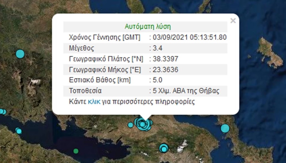 Άλλος ένας σεισμός σημειώθηκε σήμερα κοντά στη Θήβα.