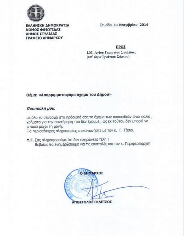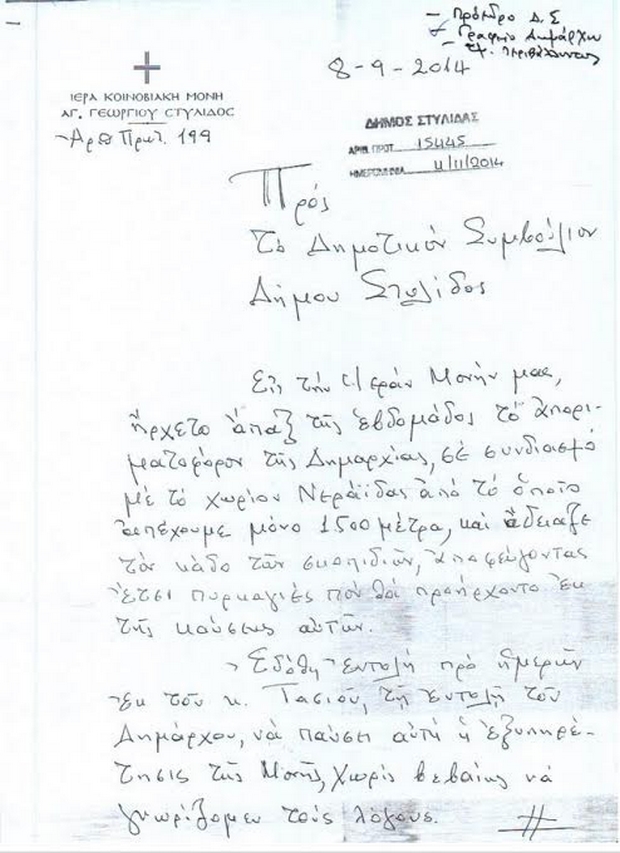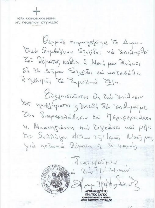 Το αίτημα του Αρχιμανδρίτη Ιγνάτιου Σάπιου στο Δημοτικό Συμβούλιο Στυλίδας και η απάντηση του Δημάρχου Απόστολου Γκλέτσου