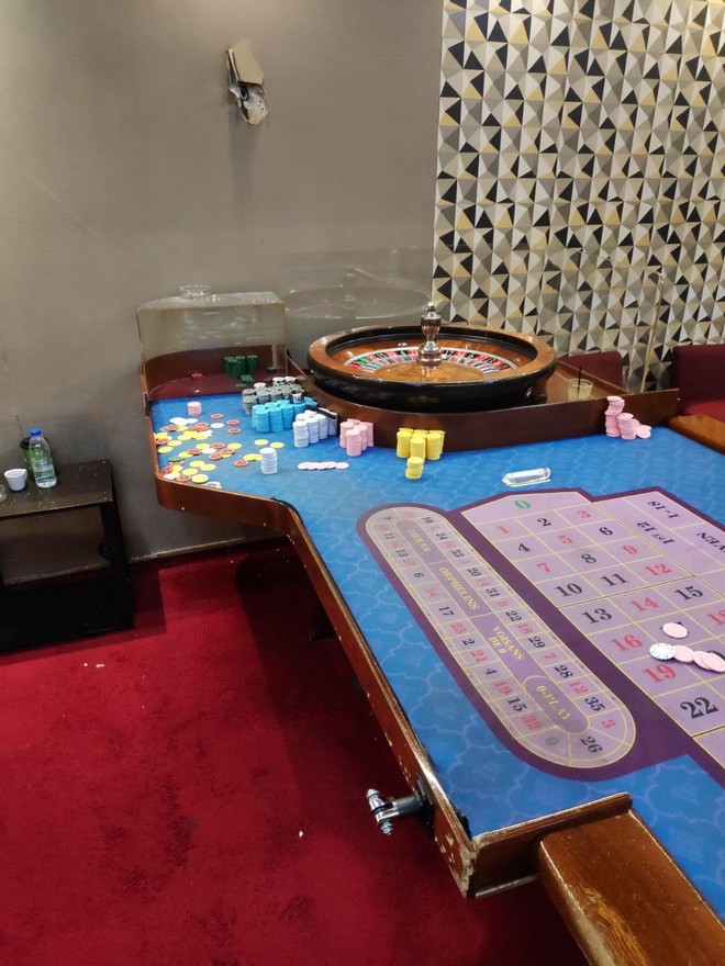 Σύμφωνα με την αστυνομία, από τον έλεγχο στο κατάστημα διαπιστώθηκε ότι είχαν εγκατασταθεί σε ειδικά διαμορφωμένο χώρο 30 ηλεκτρονικοί υπολογιστές παράνομων τυχερών παιχνιδιών, συνδεδεμένοι σε server με 2 οθόνες και 4 κεντρικές μονάδες, 2 οθόνες στους τοίχους και παιχνιδομηχάνημα τύπου ρουλέτα. Παράλληλα, σε άλλους χώρους είχαν εγκατασταθεί 4 ειδικά διαμορφωμένα τραπέζια χαρτοπαιξίας, 6 επιτραπέζιες ρουλέτες και μια ψηφιακή.
