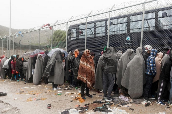 Περισσότεροι από 1000 άνθρωποι περιμένουν στη βροχή, έξω από το πρώτο ελληνικό “hot spot” στη Μόρια της Λέσβου, για να παραλάβουν τα έγγραφά τους. “Έχουμε δει πολλές έγκυες γυναίκες και μικρά παιδιά να περιμένουν στην ουρά για αρκετές ημέρες μέσα στη λάσπη. Είναι βρεγμένοι μέχρι το κόκκαλο και κάποιοι απ’ αυτούς φορούν μόνο ένα μπλουζάκι. Πολλοί δεν μπορούν να σταθούν πια όρθιοι γιατί τα πόδια τους έχουν πρηστεί, αφού είναι υγρά για αρκετές ημέρες”, αναφέρει χαρακτηριστικά ο συντονιστής των Γιατρών Χωρίς Σύνορα, Yves Wailly.