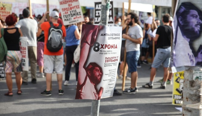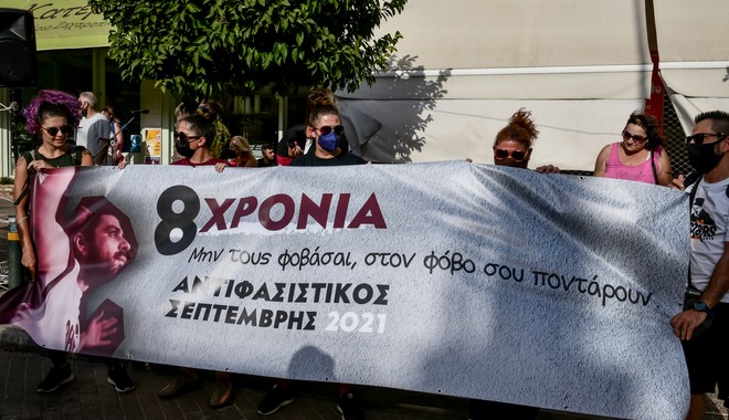 Ανήμερα της συμπλήρωσης οκτώ χρόνων από τη νύχτα που το μέλος της εγκληματικής οργάνωσης Χρυσή Αυγή, Γιώργος Ρουπακιάς, μαχαίρωσε τον Παύλο Φύσσα, χιλιάδες άνθρωποι συγκεντρώθηκαν στο σημείο της δολοφονίας και πραγματοποίησαν πορεία.