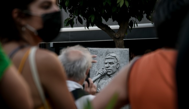 Στην οδό Παύλου Φύσσα, μπροστά από το μνημείο του δολοφονημένου μουσικού έδωσαν και φέτος ραντεβού χιλιάδες άνθρωποι.