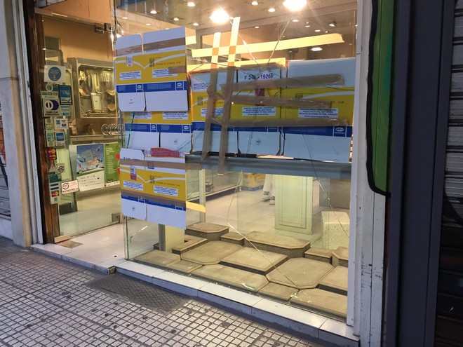 Τα καταστήματα βρίσκονται δίπλα στο κοσμηματοπωλείο που βρήκε τραγικό θάνατο ο Ζακ Κωστόπουλος - Τα άτομα που επιτέθηκαν και προκάλεσαν τις φθορές είχαν καλυμμένα τα πρόσωπα τους.