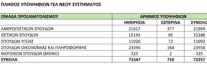Αναλυτικά στατιστικά για τους υποψηφίους των ανθρωπιστικών σπουδών από τα ημερήσια Λύκεια