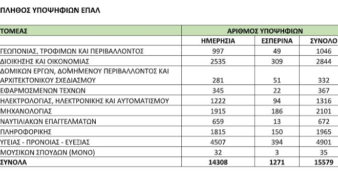 Αναλυτικά στατιστικά για τους υποψηφίους των θετικών σπουδών από τα ημερήσια Λύκεια