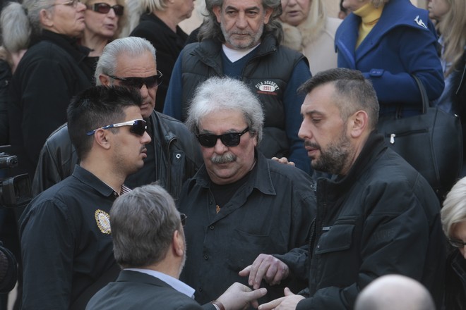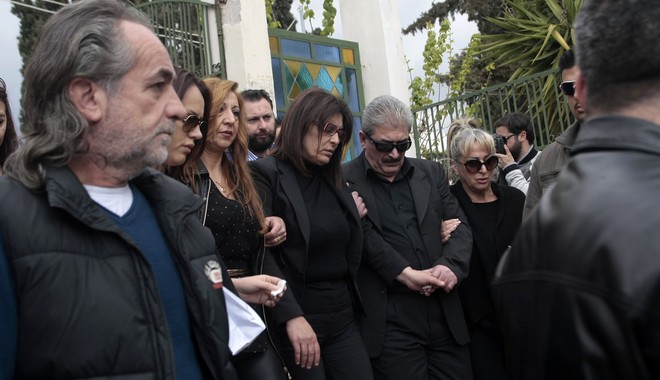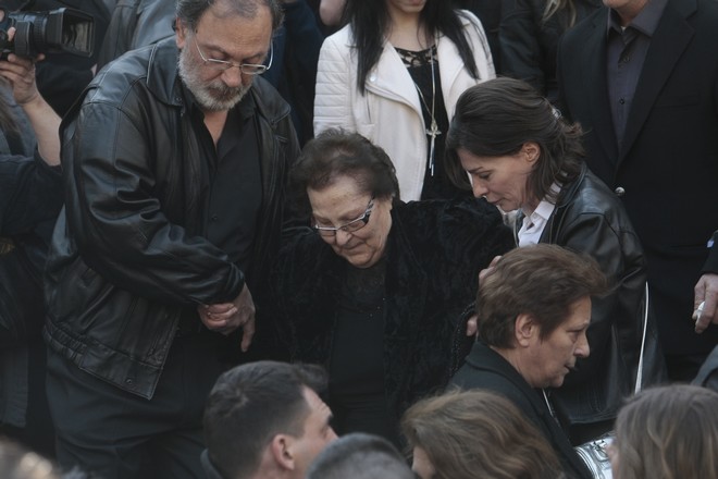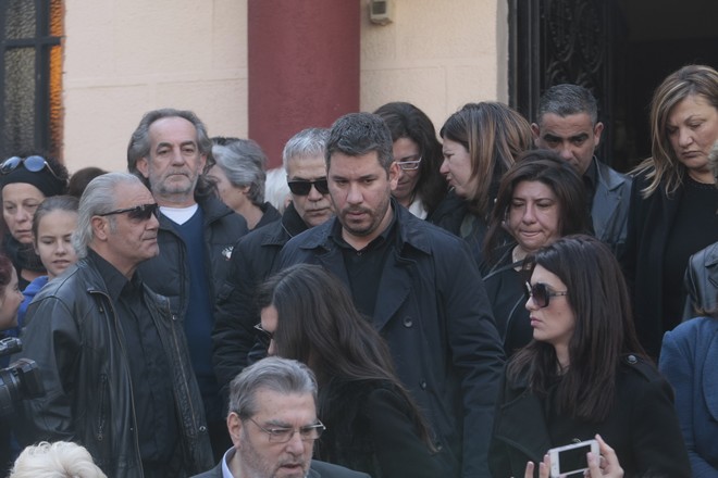Υποβασταζόμενοι οι γονείς του τραγουδιστή βγήκαν από την εκκλησία μετά την ολοκλήρωση της επιμνημόσυνης δέησης, προκειμένου να κατευθυνθούν στο Κοιμητήριο Μεταμόρφωσης, όπου αναπαύεται ο γιος τους, μετά το τροχαίο δυστύχημα της 18ης Φεβρουαρίου, που συγκλόνισε την Ελλάδα.