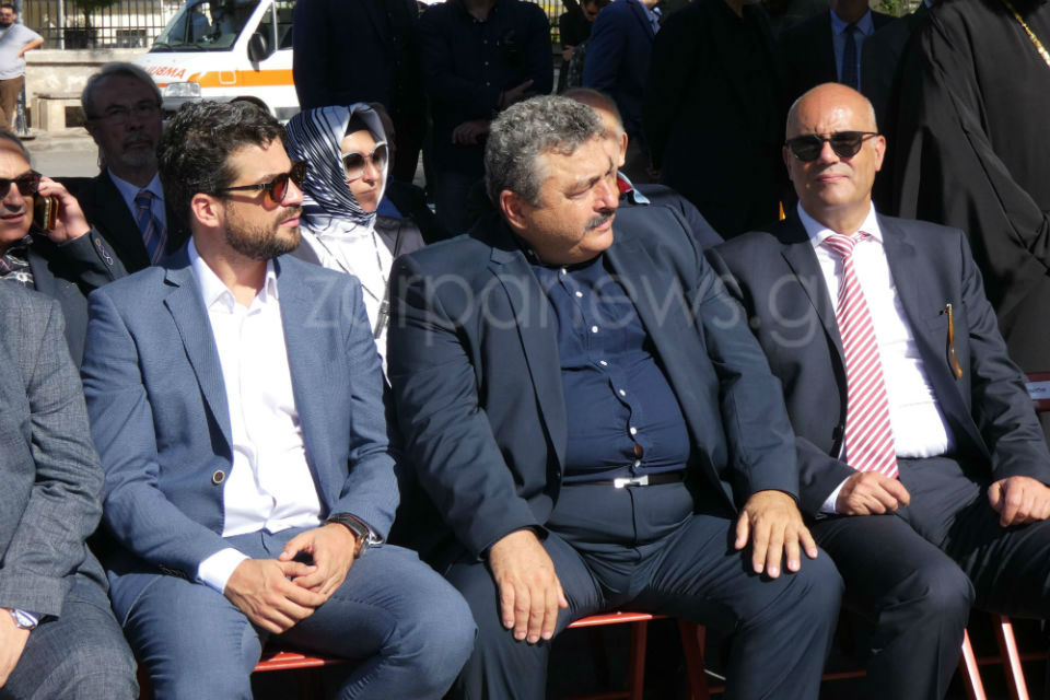 Γυναίκα "μυστήριο" με μαντίλα και μαύρο γυαλί στους επισήμους της παρέλασης στα Χανιά. Την ταυτότητά της αποκάλυψε ο δήμαρχος της πόλης.