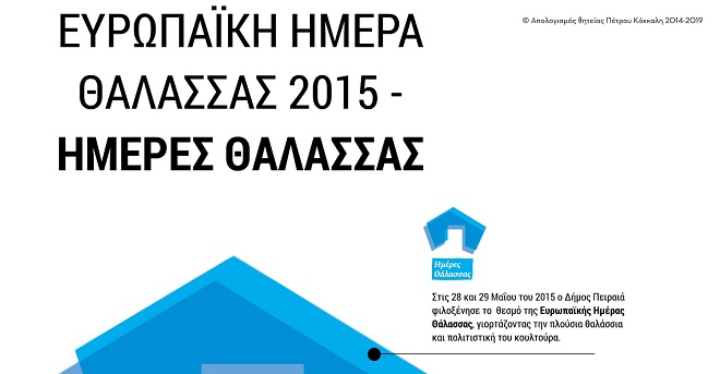 Στις 28 και 29 Μαΐου του 2015 ο Δήμος Πειραιά φιλοξένησε το θεσμό της Ευρωπαϊκής Hμέρας Θάλασσας, γιορτάζοντας την πλούσια θαλάσσια και πολιτιστική του κουλτούρα και διοργανώνοντας το πιο επιτυχημένο Συνέδριο στην ιστορία του ευρωπαϊκού αυτού θεσμού με ρεκόρ συμμετεχόντων.