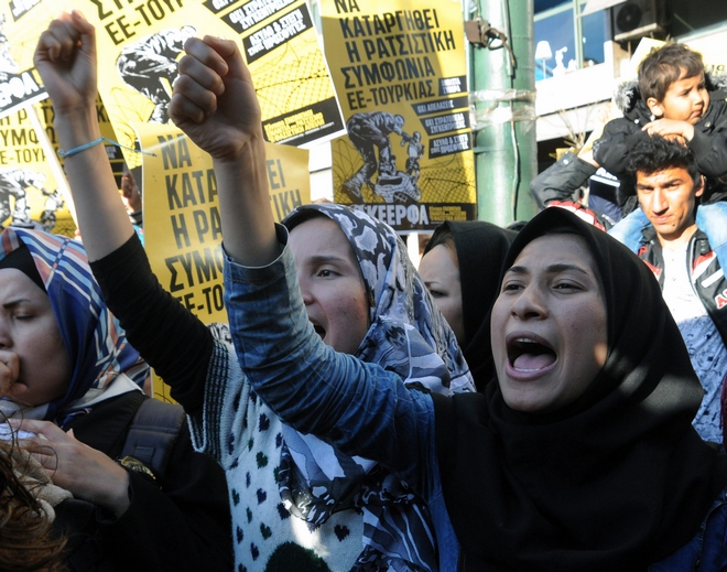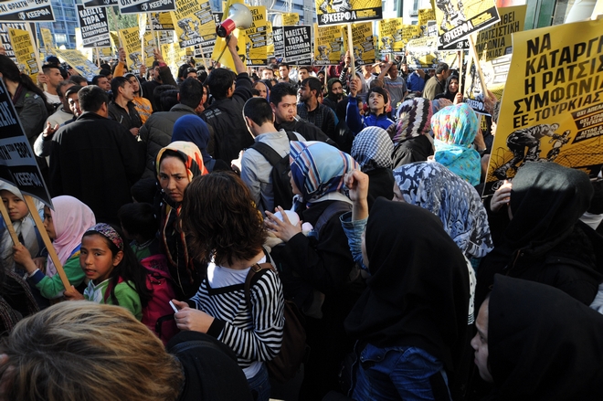 Σύμφωνα με τις επίσημες εκτιμήσεις, περίπου 2.000 άνθρωποι διαδήλωσαν κατά των κλειστών συνόρων και τη συμφωνία της Ε.Ε. με την Τουρκία.