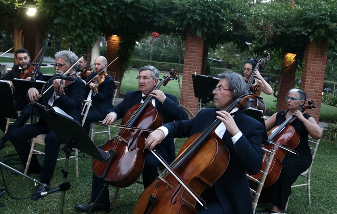 Στη συνέχεια ο κ. Στρατάκης, φόρεσε το κοστούμι του, όπως φαίνεται και στη φωτογραφία, πήρε το βιολί του και με τα υπόλοιπα μέλη της ορχήστρας “έντυσαν” με τις νότες τους την καθιερωμένη δεξίωση.