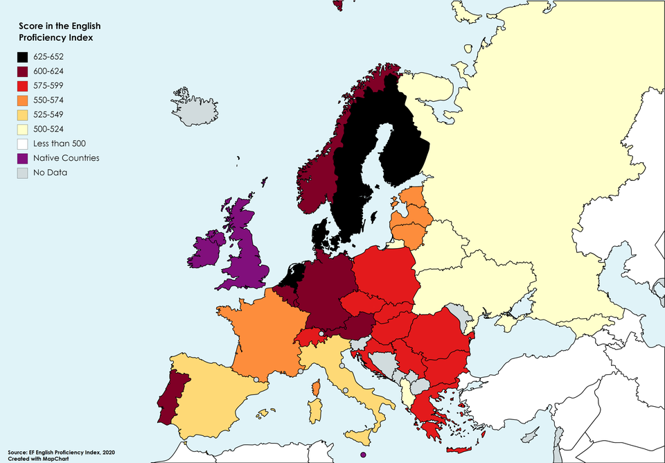 Σύμφωνα λοιπόν με τον EF English Proficiency Index η Ελλάδα με 578 βαθμούς κατατάσσεται στην 21 πρώτη θέση στις εκατό χώρες που συμμετέχουν στον δείκτη. Σε επίπεδο Ευρώπης η χώρα μας βρίσκεται στην την 19η θέση σε 34 χώρες και βρίσκεται πίσω από την Βουλγαρία αλλά μπροστά από χώρες όπως η Γαλλία (28η στον κόσμο), Ιταλία (30η) και Ισπανία (34η).
