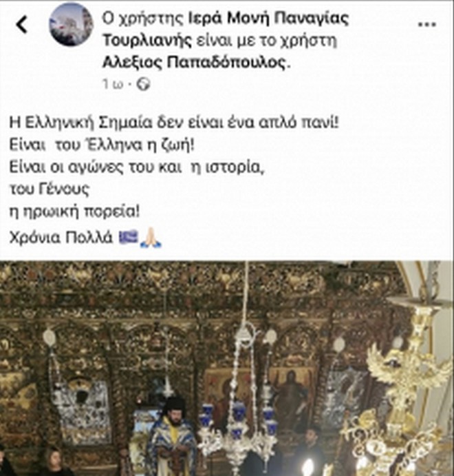 Ο κορονοϊός καλπάζει στη χώρα και στη σελίδα του ναού στο διαδίκτυο βλέπουμε φωτογραφία, στην οποία κανείς δεν φοράει μάσκα μέσα στην εκκλησία.