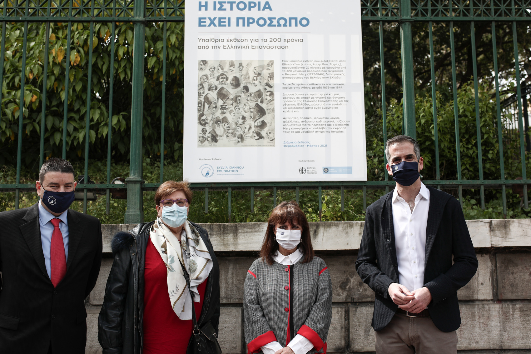 Στη συνέχεια, η Πρόεδρος της Δημοκρατίας περιηγήθηκε στην υπαίθρια έκθεση «Η Ιστορία έχει πρόσωπο», που φιλοξενείται στην περίφραξη του Εθνικού Κήπου. Στην έκθεση παρουσιάζονται 22 πίνακες με ορισμένα από τα 320 μοναδικά πορτρέτα αγωνιστών του ’21, που φιλοτέχνησε εκ του φυσικού από το 1839-1844 ο Benjamin Mary, διπλωματικός αντιπρόσωπος του Βελγίου στην Ελλάδα.