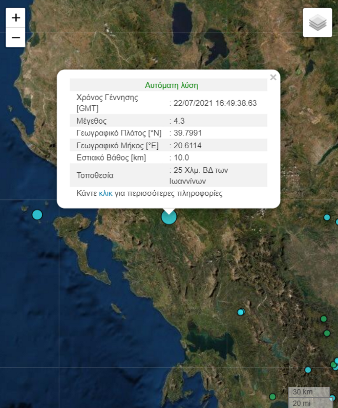 Σεισμός μεγέθους 4,3 βαθμών της κλίμακας Ρίχτερ ταρακούνησε το απόγευμα της Πέμπτης 22 Ιουλίου, την πόλη των Ιωαννίνων.