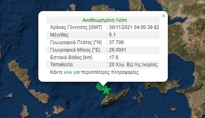Σεισμός 5,1 Ρίχτερ στην Ικαρία – Αισθητός και σε άλλα νησιά