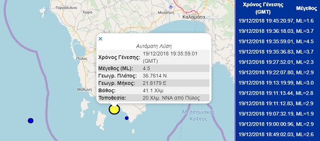 Σεισμός: Ισχυρή δόνηση νοτιοανατολικά της Πύλου