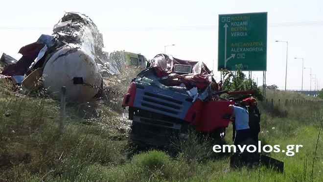 Για άγνωστη αιτία το όχημα (το οποίο έφερε πινακίδες Βουλγαρίας) κινούμενο στο ρεύμα της Εγνατίας με κατεύθυνση προς Βέροια, εξετράπη της πορείας του πέφτοντας στο πρανές του δρόμου. Από το σημείο ανασύρθηκε νεκρός ο οδηγός του βυτιοφόρου από άνδρες του ΕΚΑΒ και τη συνδρομή της Πυροσβεστικής Υπηρεσίας Αλεξάνδρειας.
