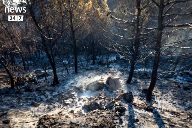 Στάχτη και αποκαΐδια ο Κάλαμος: Η εικόνα μετά τη φωτιά