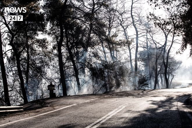 Το News 24/7 σας παρουσιάζει συγκλονιστικές φωτογραφίες από τον Κάλαμο, λίγο μετά την ηρωική μάχη πυροσβεστών και κατοίκων με τις φλόγες. Στο τοπίο της άλλοτε πράσινης περιοχής κυριαρχεί η στάχτη και ο καπνός