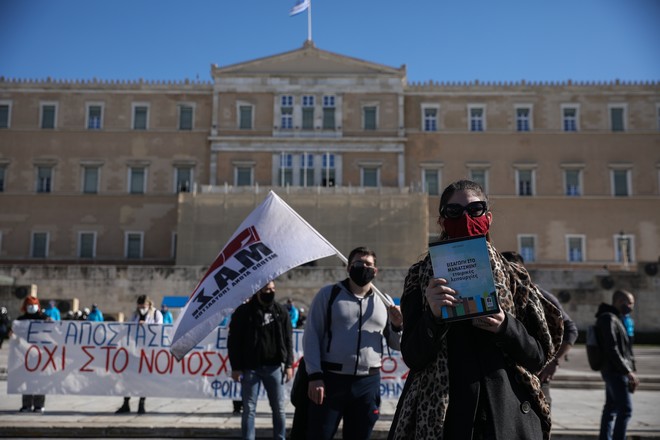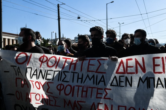 Δεκάδες φοιτητικοί σύλλογοι που συμμετείχαν στη διαδήλωση ζήτησαν να μην κατατεθεί το νομοσχέδιο του υπουργείου Παιδείας ενώ αντιδρούν ενάντια στην πανεπιστημιακή αστυνομία, στις αλλαγές στον τρόπο εισαγωγής στην Τριτοβάθμια Εκπαίδευση και σε σειρά άλλων θεμάτων.