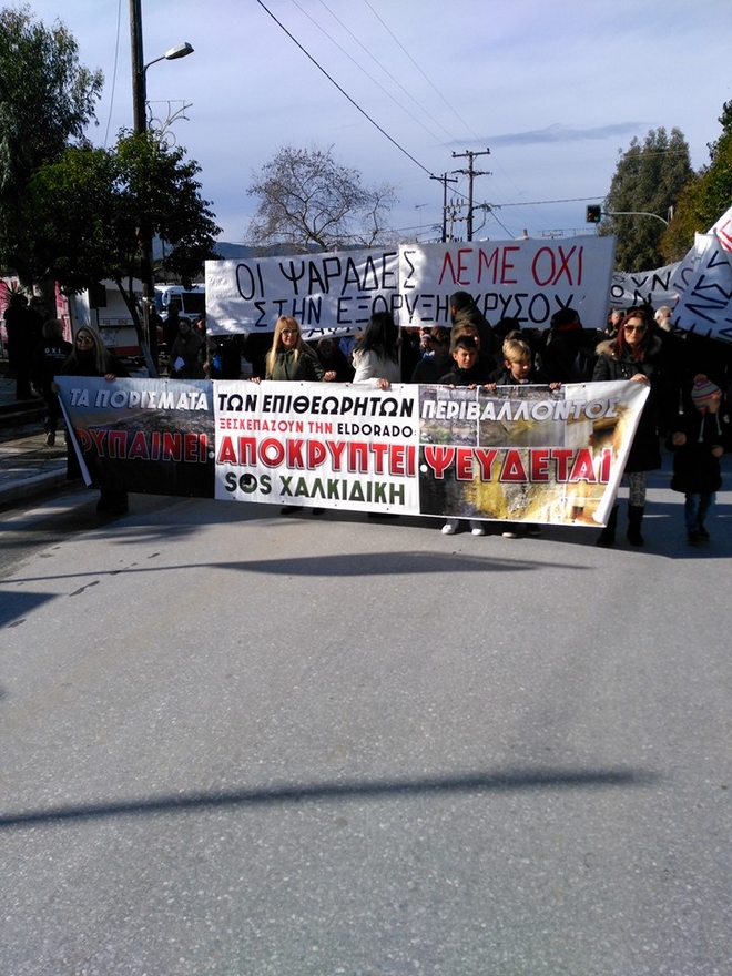 Το μήνυμα που στέλνουμε προς την κυβέρνηση, την Eldorado Gold, προς όλες τις κατευθύνσεις είναι ξεκάθαρο: Δεν πρόκειται να σταματήσουμε αν δε σταματήσουμε αυτή την καταστροφή, αν δε διώξουμε την εταιρεία”, αναφέρει η ανακοίνωση του SOS Χαλκιδική.