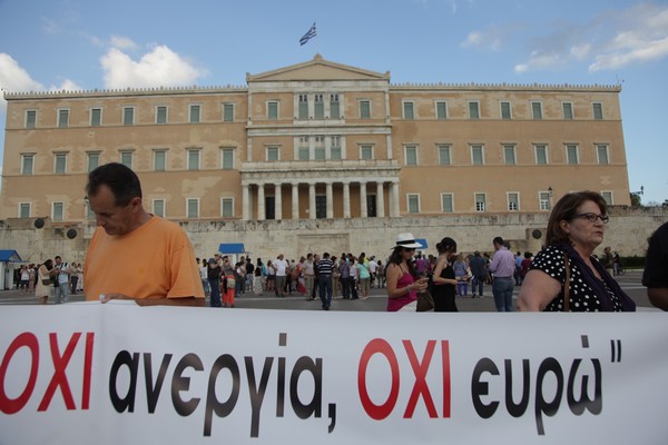Μεγάλος πλήθος κόσμου, που ανταποκρίθηκε στο κάλεσμα, διαδήλωσε μπροστά από το Κοινοβούλιο καλώντας την κυβέρνηση να μην υποχωρήσει στις απαιτήσεις των δανειστών.