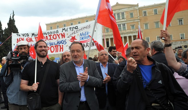 Στην πλατεία Συντάγματος βρίσκονται εκτός από την ΑΔΕΔΥ, η ΛΑΕ, η ΑΝΤΑΡΣΥΑ, εργαζόμενοι στις αστικές συγκοινωνίες και το ΠΑΜΕ που έφτασε με πορεία από την πλατεία Ομονοίας