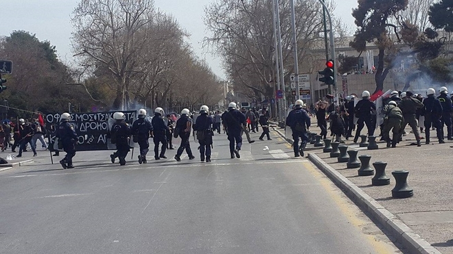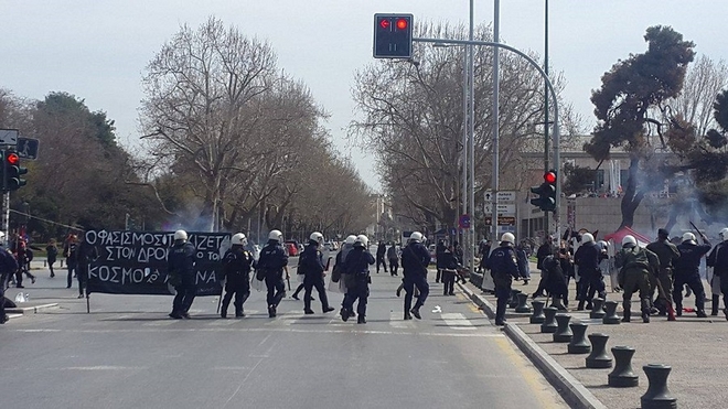 Συμπλοκές μεταξύ αντιεξουσιαστών και αστυνομίας μπροστά από τον Λευκό Πύργο