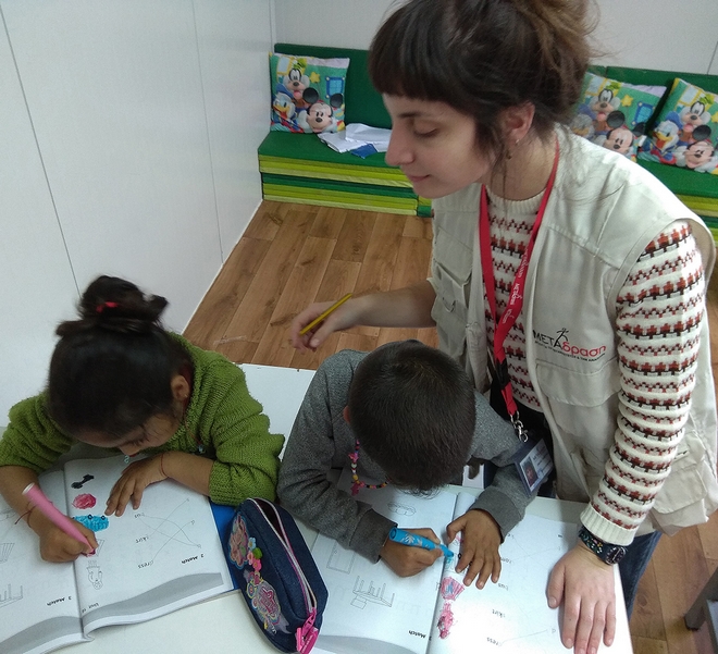 “Ο αριθμός των παιδιών που παραμένουν εγκλωβισμένα για μεγάλα χρονικά διαστήματα στα hotspot των νησιών είναι υψηλός. Πολλά από αυτά δεν έχουν πάει ποτέ σχολείο. Όλα τους, όμως, επιθυμούν να ενταχθούν σε ένα πλαίσιο, στο οποίο θα μπορούν να μαθαίνουν και να αναπτύσσονται μαζί με παιδιά της ηλικίας τους. Μας συγκίνησε η λαχτάρα με την οποία περίμεναν να ξεκινήσουν τα μαθήματα την πρώτη κιόλας μέρα, σχηματίζοντας ουρές πολλή ώρα πριν. Από τότε, έρχονται καθημερινά με τον ίδιο ενθουσιασμό! Οι δε γονείς τους μάς επισκέπτονται συχνά, εκφράζοντας το ενδιαφέρον τους για την πρόοδο των παιδιών τους”, αναφέρει η Αναστασία Καραγιάννη, υπεύθυνη εκπαίδευσης της ΜΕΤΑδρασης στη Χίο.
