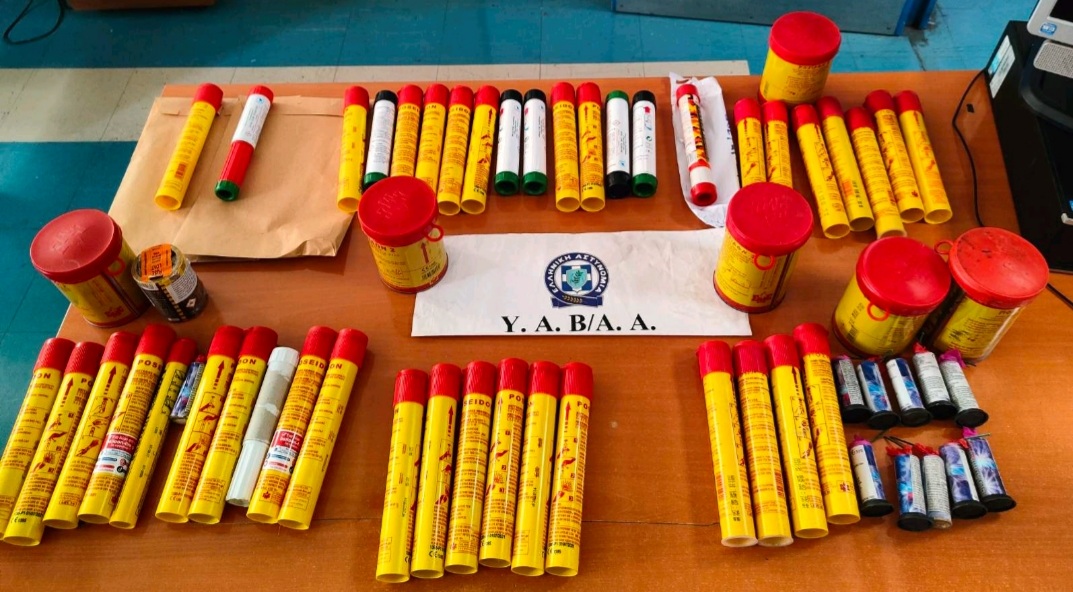 Μετά από ελέγχους, στην κατοχή τους βρέθηκαν και κατασχέθηκαν 18 βεγγαλικά, 12 ναυτικές φωτοβολίδες, 10 καπνογόνα, 10 βεγγαλικά με φυτίλι και δύο πυρσοί.
