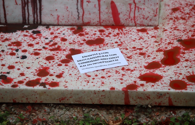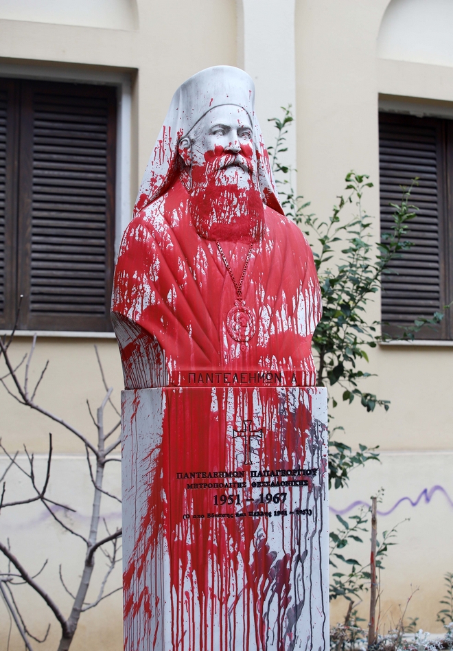 Διαμαρτυρία ενάντια στον σκοταδισμό και τον εθνικισμό από ομάδα αγνώστων που πέταξε μπογιές στη Μητρόπολη Θεσσαλονίκης. Δύο προσαγωγές από την αστυνομία.