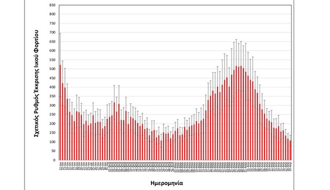 Όπως φαίνεται στα διαγράμματα που παρουσιάζει το ΑΠΕ-ΜΠΕ, έπειτα από ολιγοήμερη τάση σταθεροποίησης του ιικού φορτίου των λυμάτων, στις τρεις τελευταίες ημερήσιες μετρήσεις καταγράφεται πτωτική πορεία του.